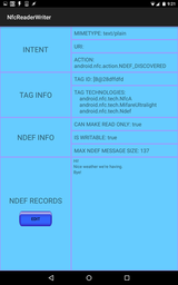reads and writes most standard (Ndef-based) NFC tags. Text records can be added, modified and deleted.