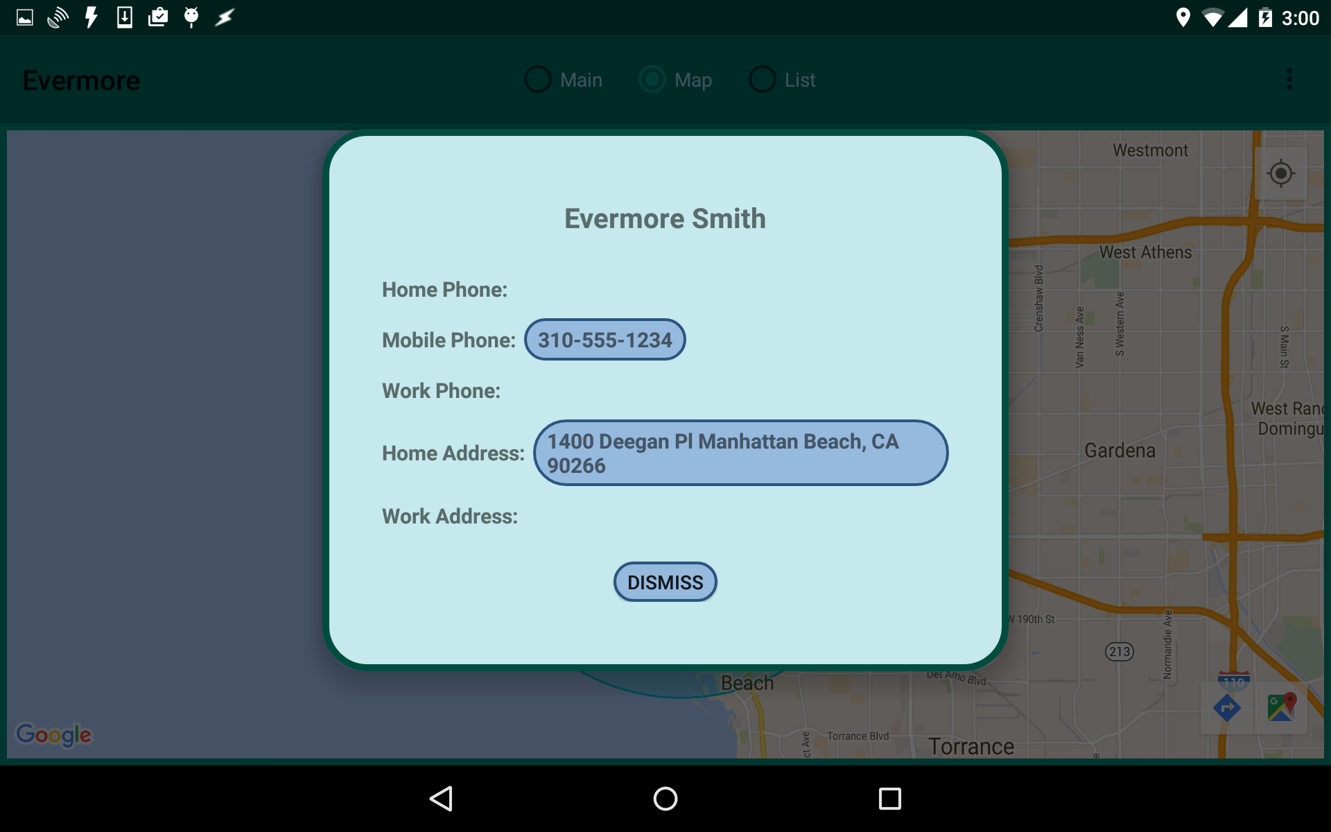 contact's phone numbers and addresses. Clicking on a phone number